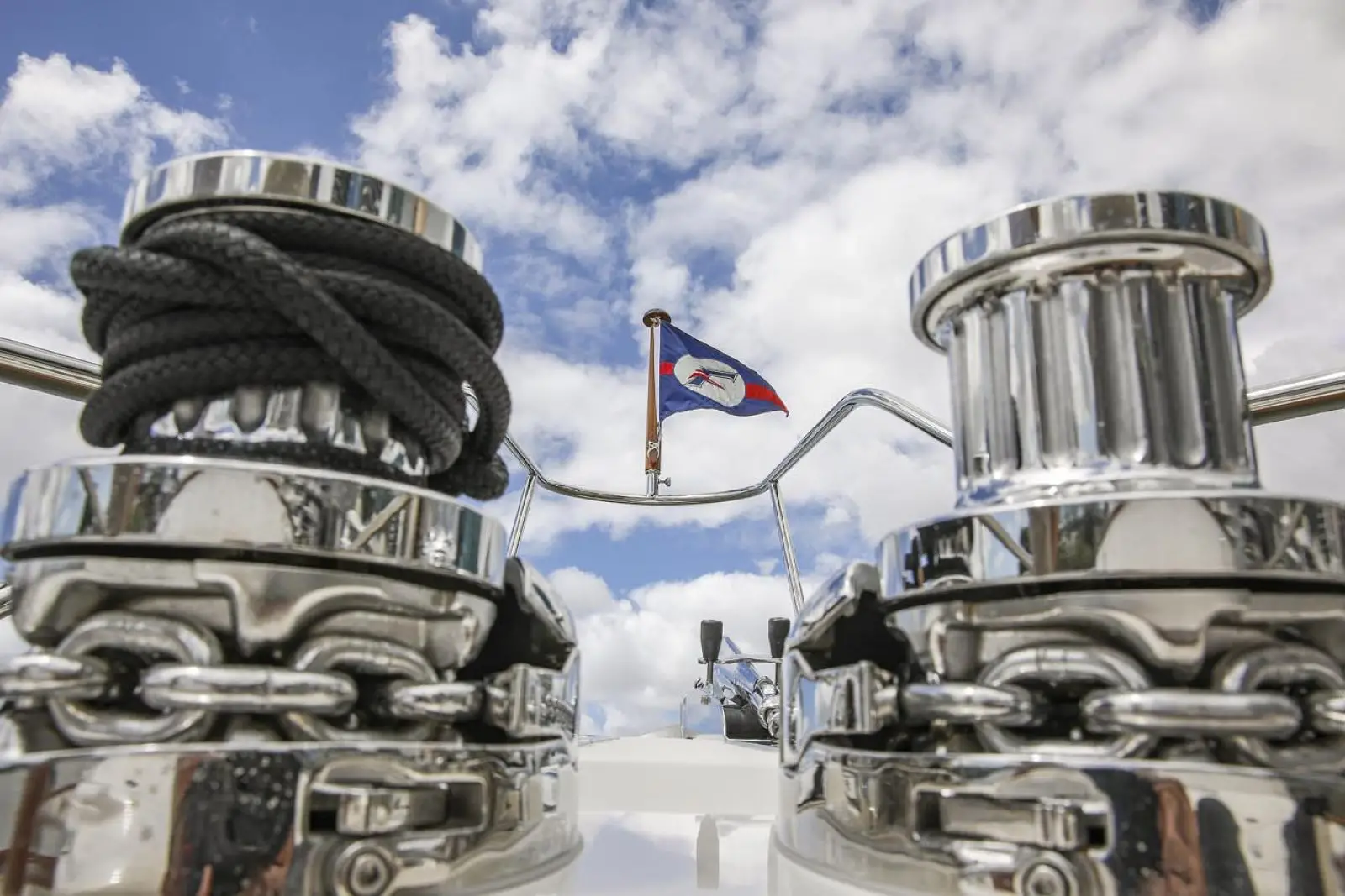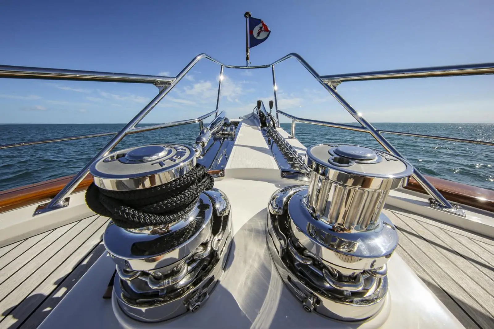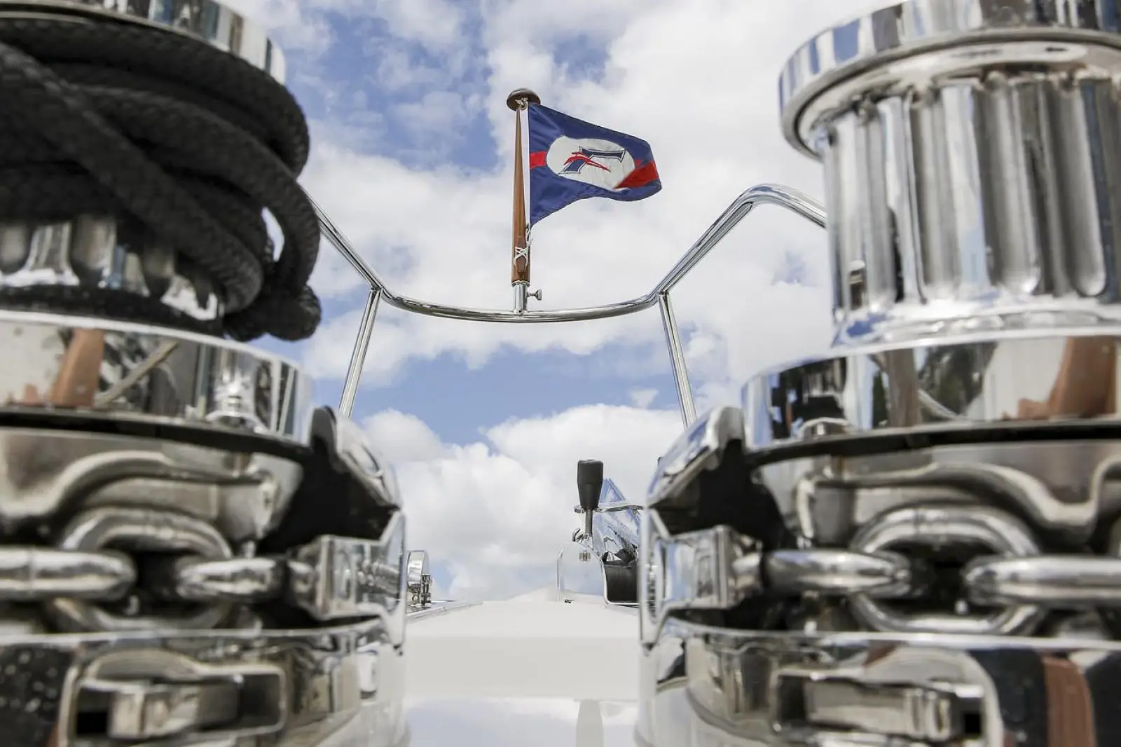 As with all Flemings, special attention has been paid to the ease and safety in which the heavy duty ground tackle is set and retrieved. Originally designed for the Fleming 75, the 65's anchor platform is especially large and robust. The anchor platform accepts two 132 lbs. (60Kg) Ultra anchors, each of which can be controlled by a handheld unit at the platform or by windlass controls at both pilothouse and flying bridge stations. A pair of hydraulically powered Maxwell RC12 vertical windlasses with capstans are standard equipment, as is a 300ft (91m) length of Grade-60 stainless steel chain.Â