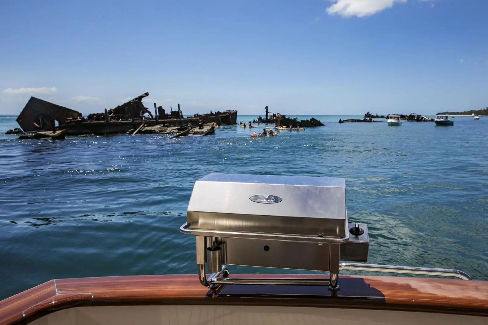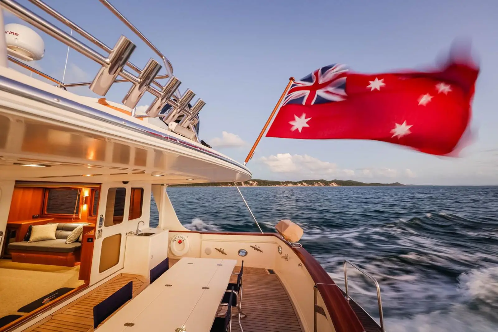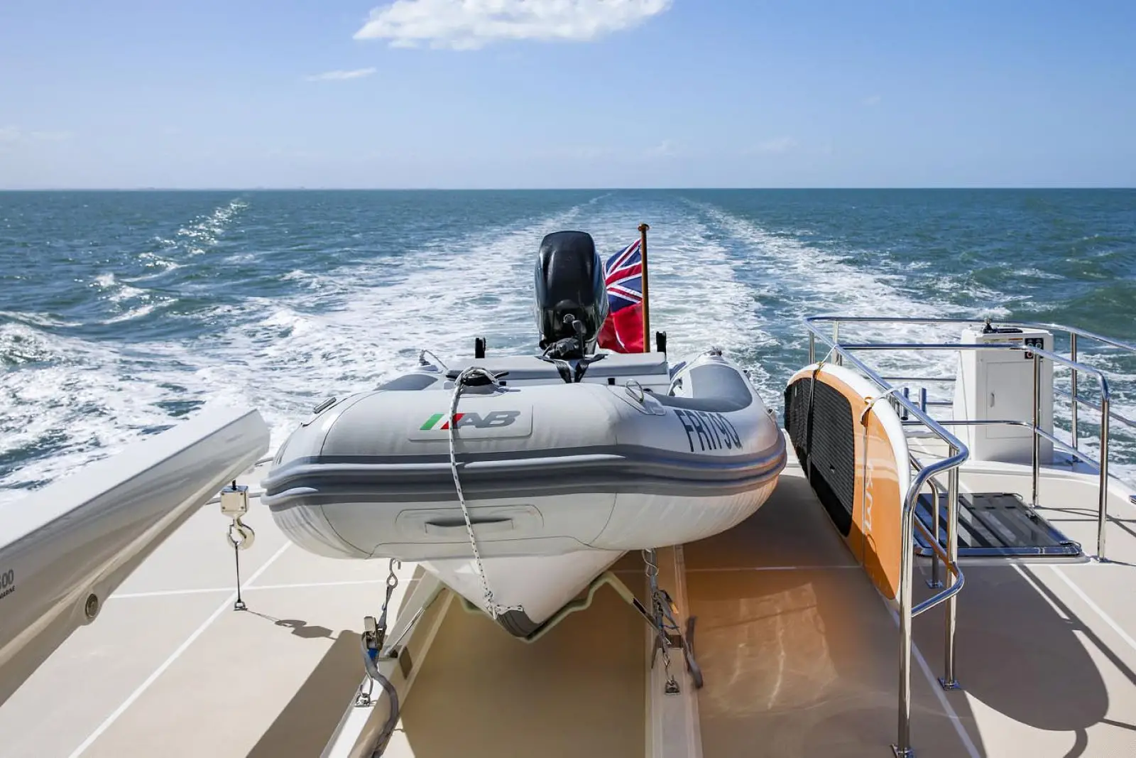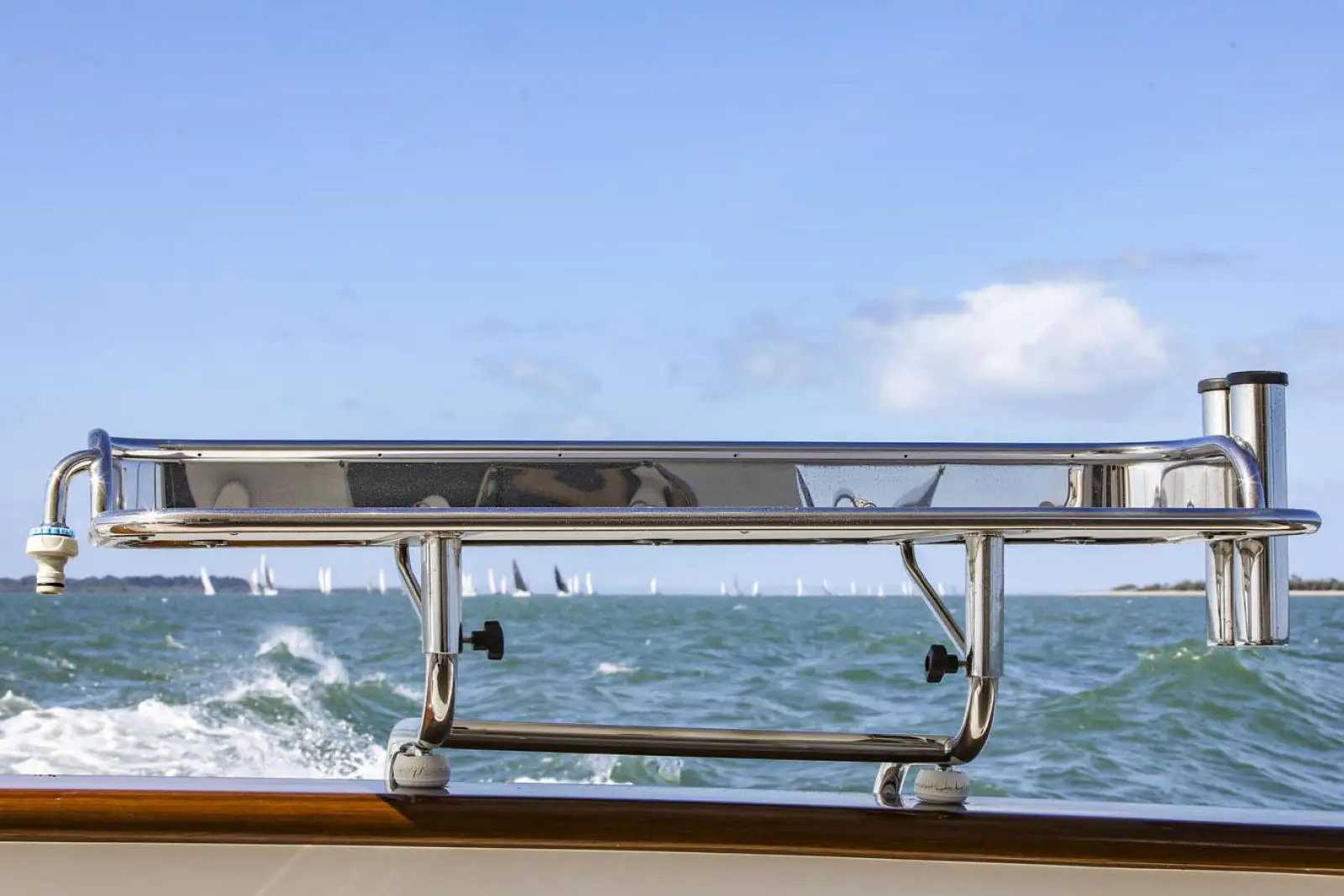 Access to the area is via a boarding gate in the transom. Adjacent to the gate is a freshwater shower fitting as well as a saltwater washdown bib.