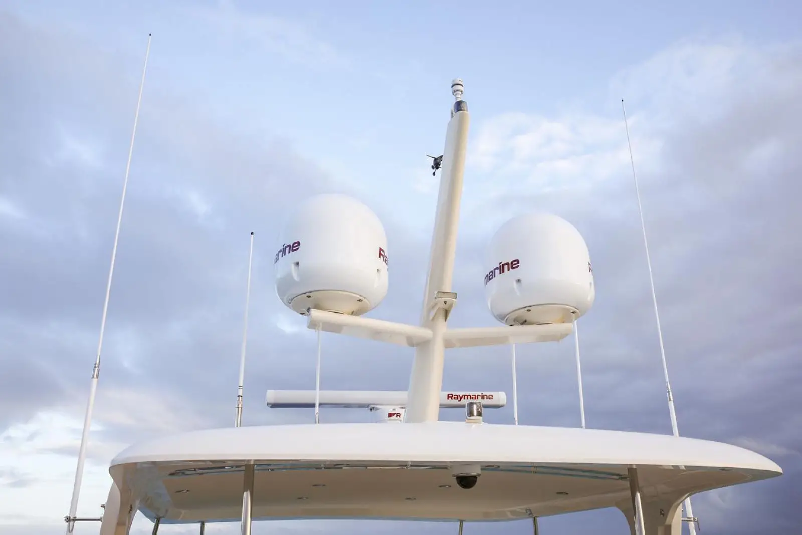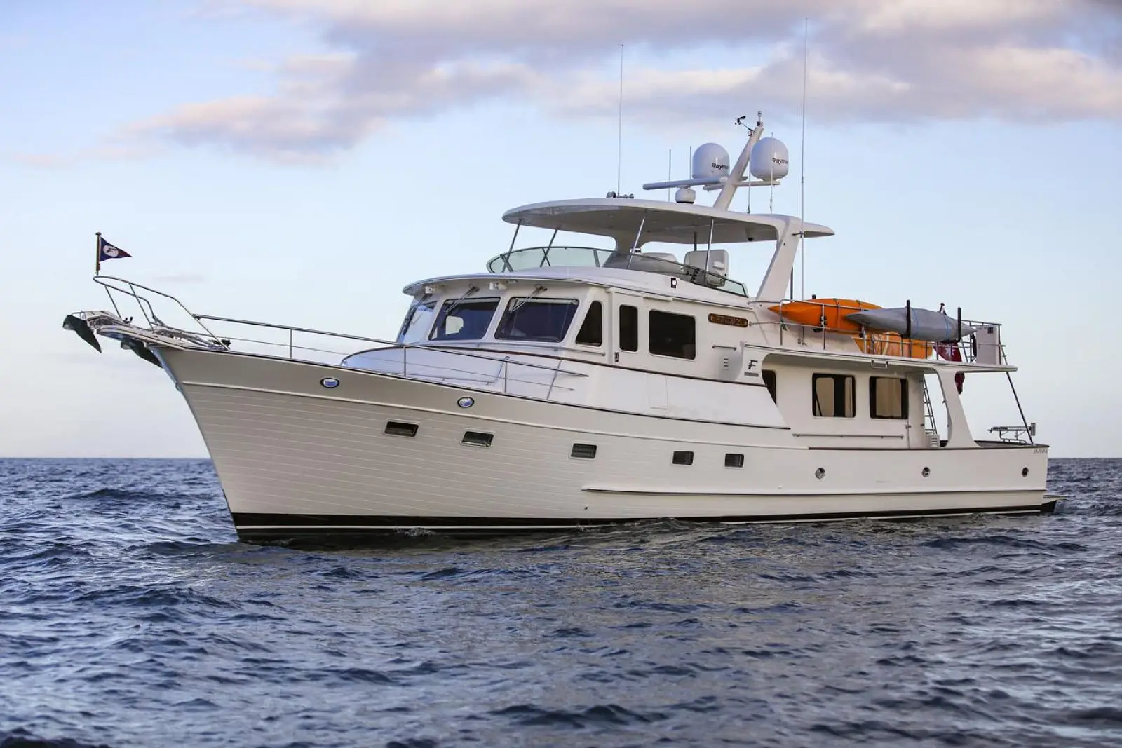 Also optional is a hardtop with a canvas-glass enclosure, which creates additional all-weather living space. Aft of the flybridge area is the boat deck, with space for a 16-foot inflatable yacht tender. A 1,500-lb. (680kg) capacity Steelhead hydraulic davit system is standard as is a freshwater bib and 110 VAC (230 VAC for European version) outlet for keeping the tender's battery charged. The stainless steel safety rail has a removable section for launching a life raft. Typical of Fleming's obsessive attention to details, the boat deck drains to a series of built-in, stainless steel drains connected to a drain manifold system that exits just above the waterline to prevent streaking of the cabin sides and topsides.