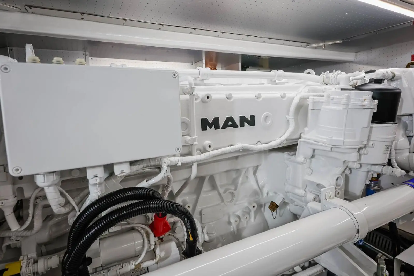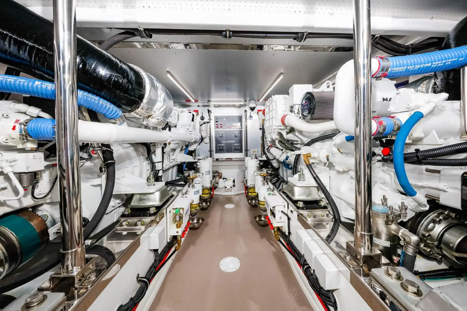 The arrangement of all mechanical systems has been done with the need for proper maintenance in mind. Every piece of equipment is accessible, and there are places for mechanics to stand and place their tools without damaging vital gear. An optional engine room air conditioning system is available, a detail that will not go unnoticed by the vessel's mechanic.