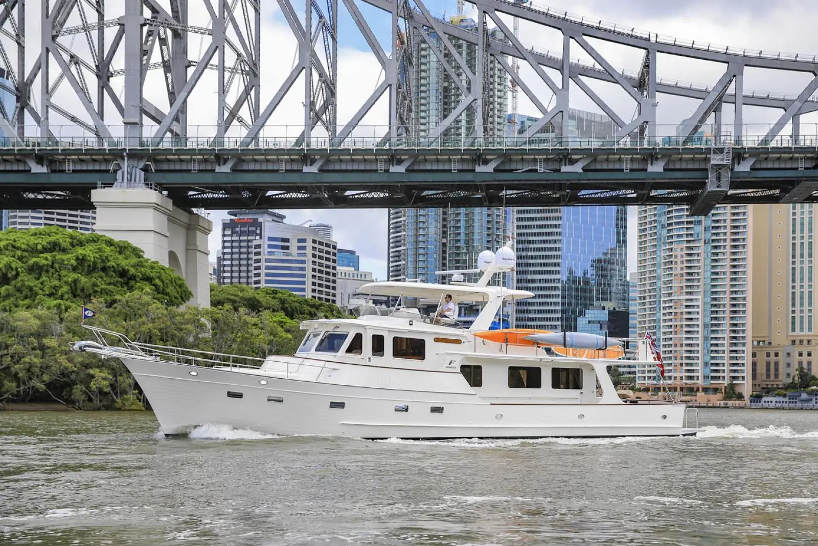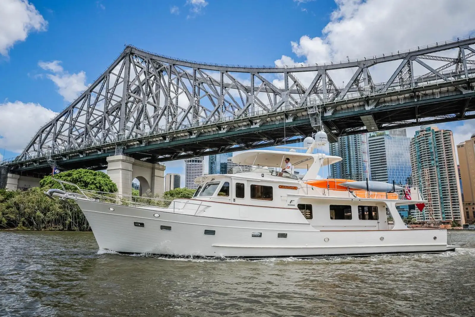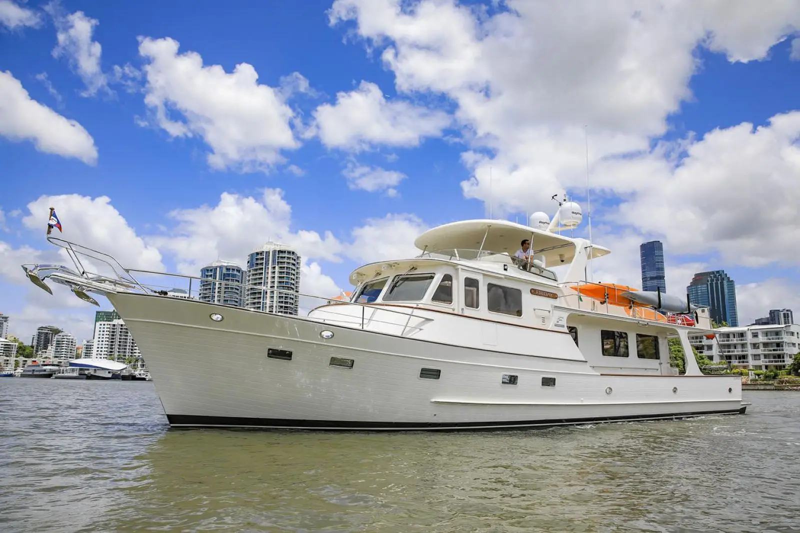 One of Fleming's signature design features is its wide side decks that enable safe, sure-footed movement from bow to stern while at sea and during docking manoeuvres. Heavy duty, stainless steel handrails are strategically located to minimize risk of injury. For convenient, effortless boarding in a variety of situations, there are port and starboard boarding gates at both the high and low deck levels, for a total of four. For added convenience and safety, these gates open inboard.