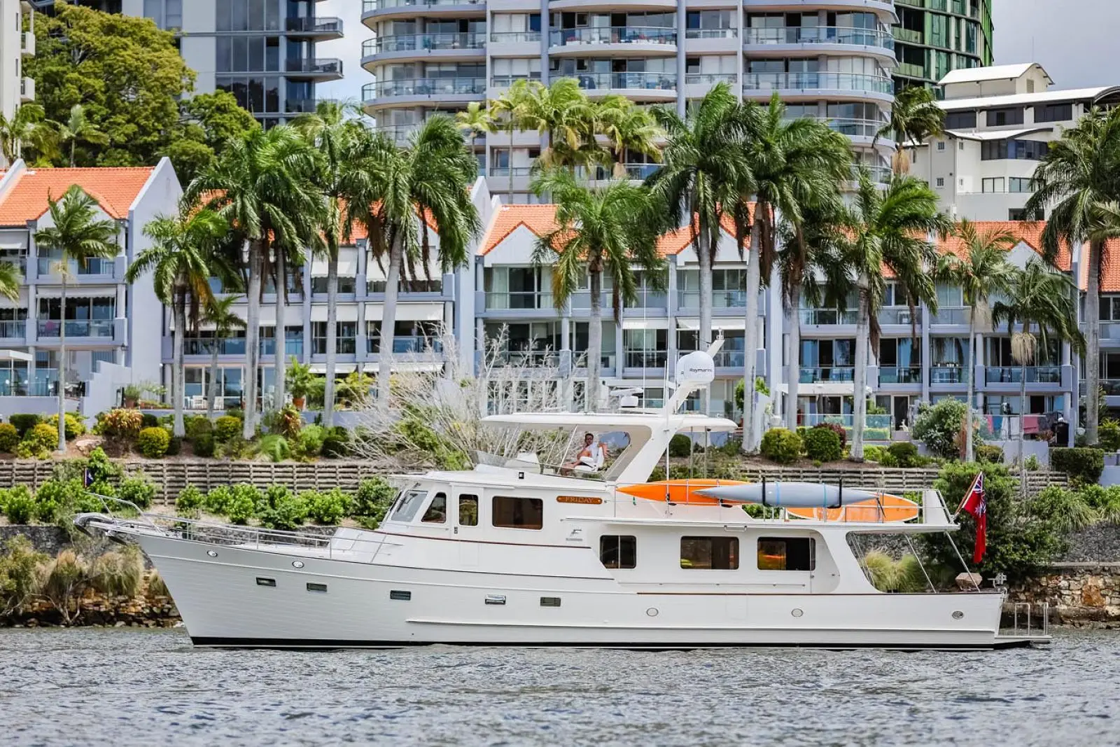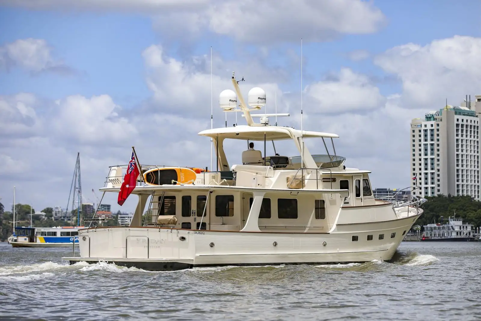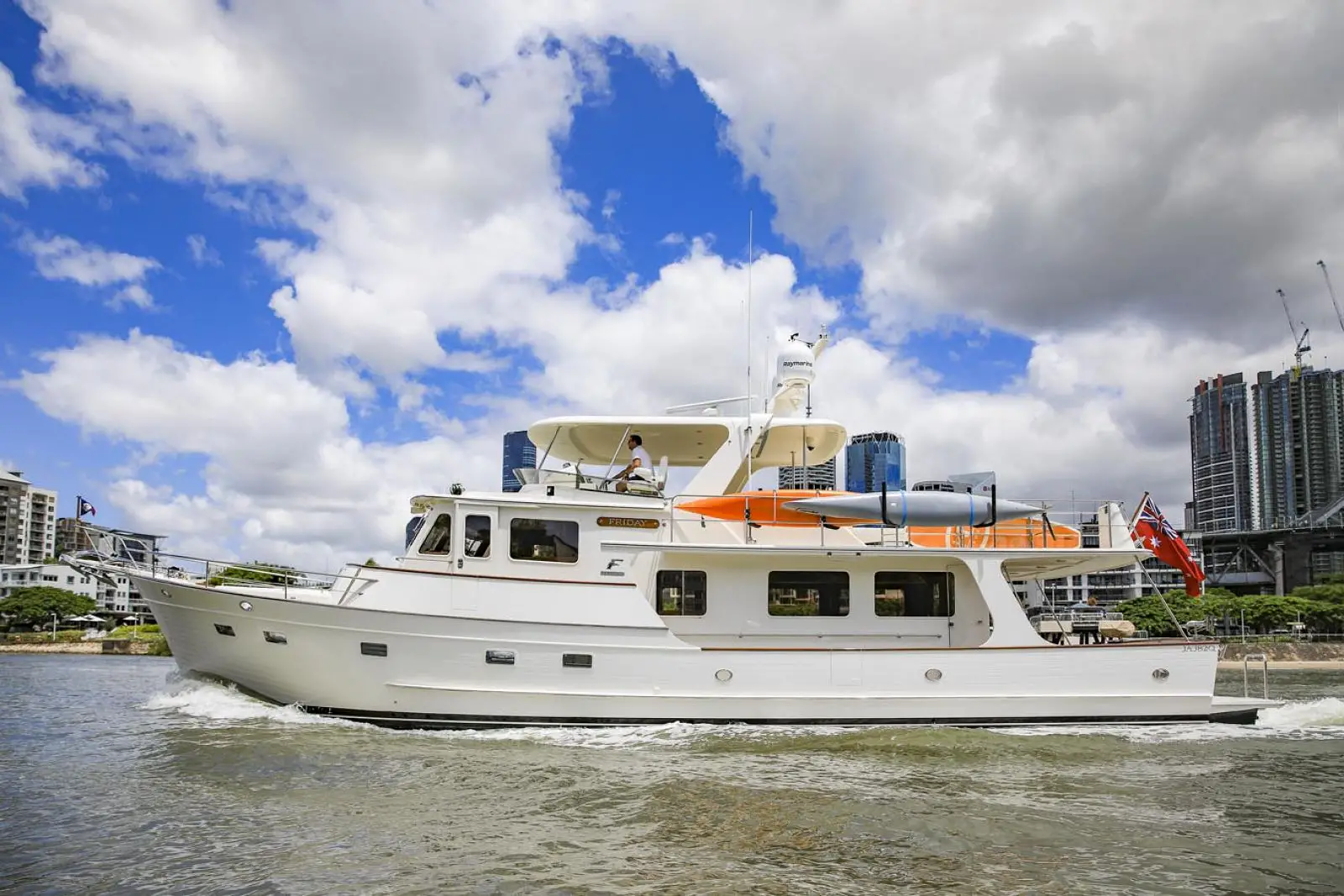One of Fleming's signature design features is its wide side decks that enable safe, sure-footed movement from bow to stern while at sea and during docking manoeuvres. Heavy duty, stainless steel handrails are strategically located to minimize risk of injury. For convenient, effortless boarding in a variety of situations, there are port and starboard boarding gates at both the high and low deck levels, for a total of four. For added convenience and safety, these gates open inboard.