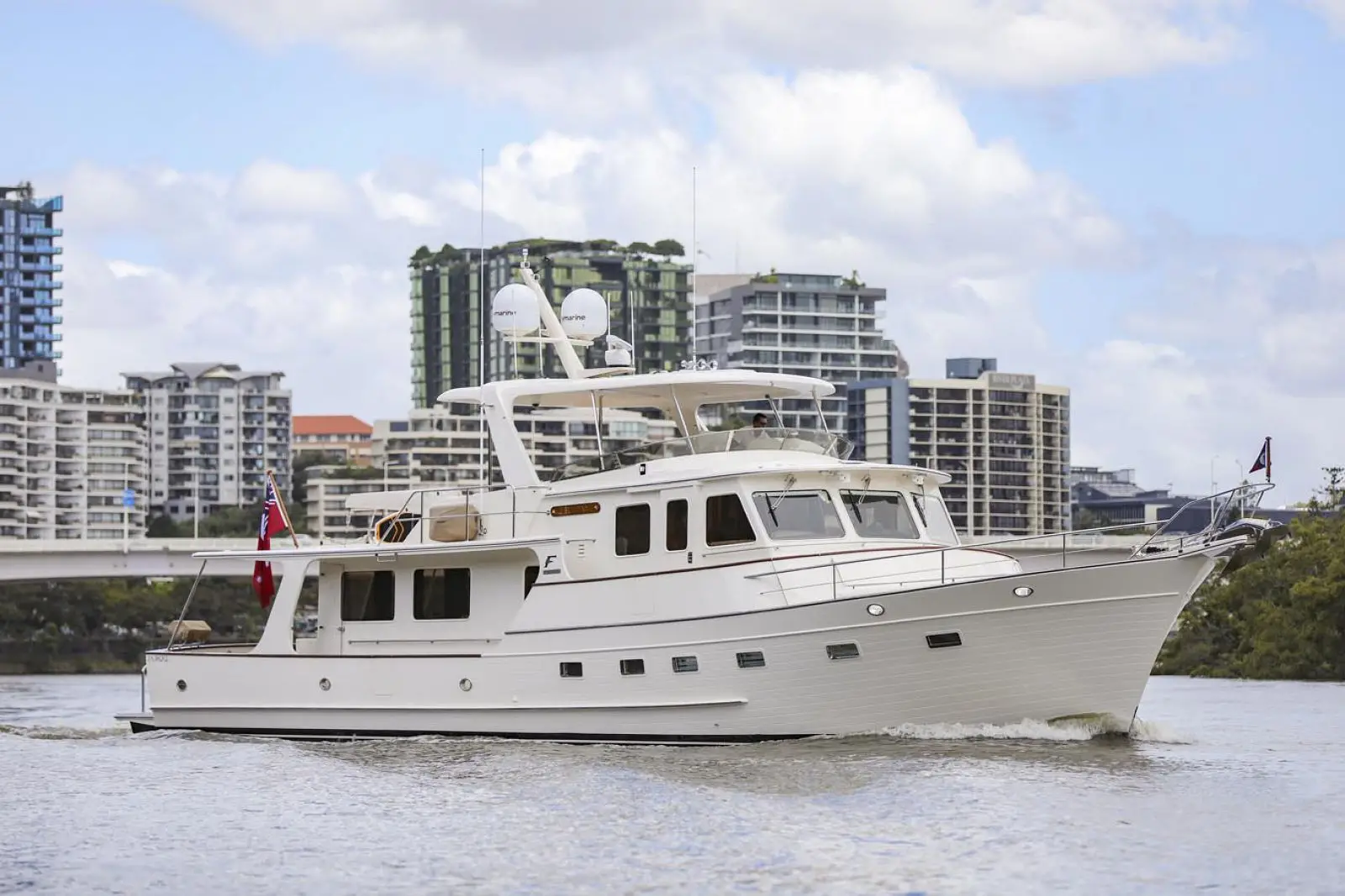 To achieve the extremely low sound and vibration that Flemings are well known for, the Aquadrive system isolates the engine and transmission from the propeller thrust, permitting the use of much softer engine mounts. Aquadrive is fitted as standard and their rotating couplings are concealed beneath fiberglass covers for safety. The engine mounts are installed on full-length, polished stainless steel channel sections, a system that has been standard on all Flemings since their inception in 1985.