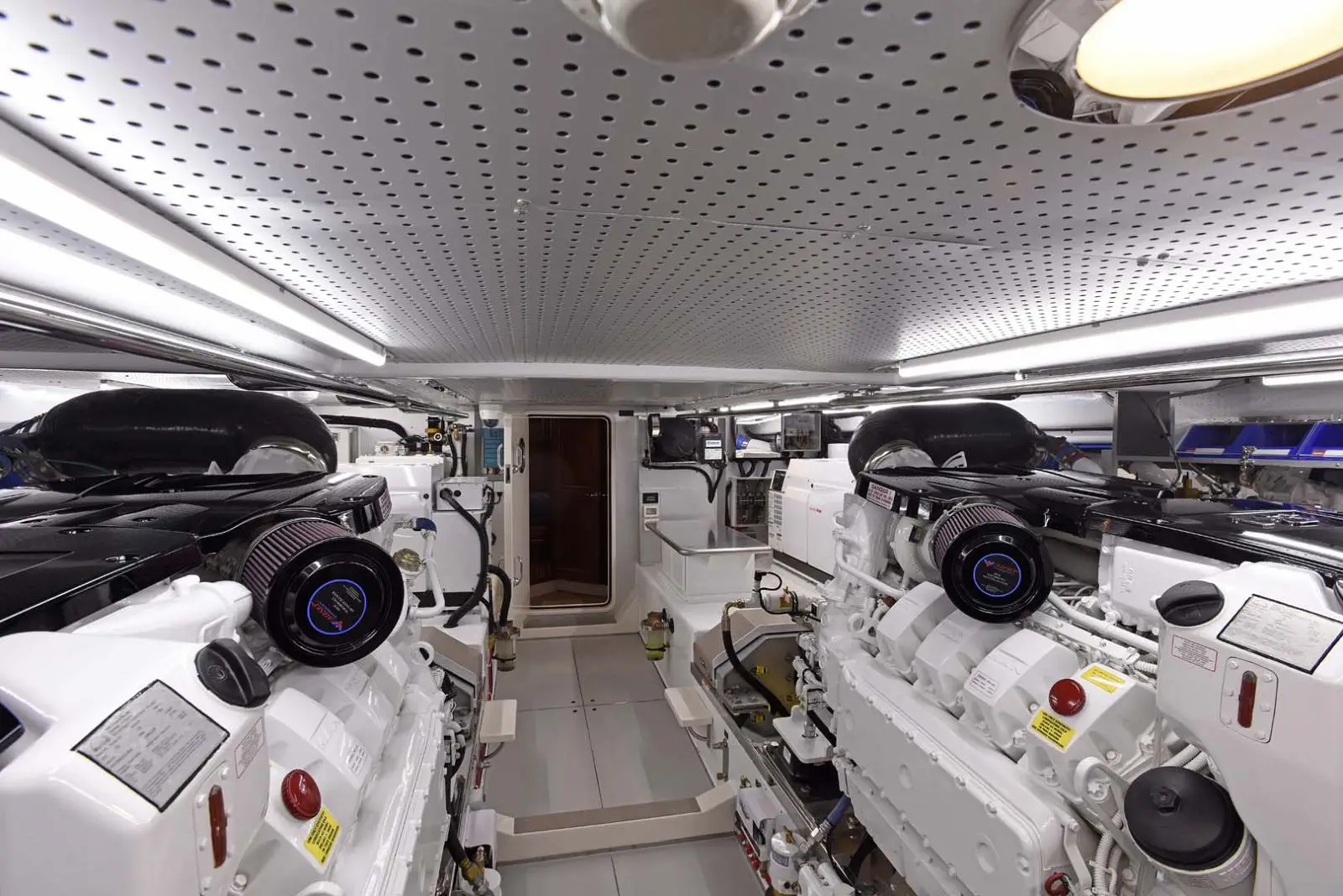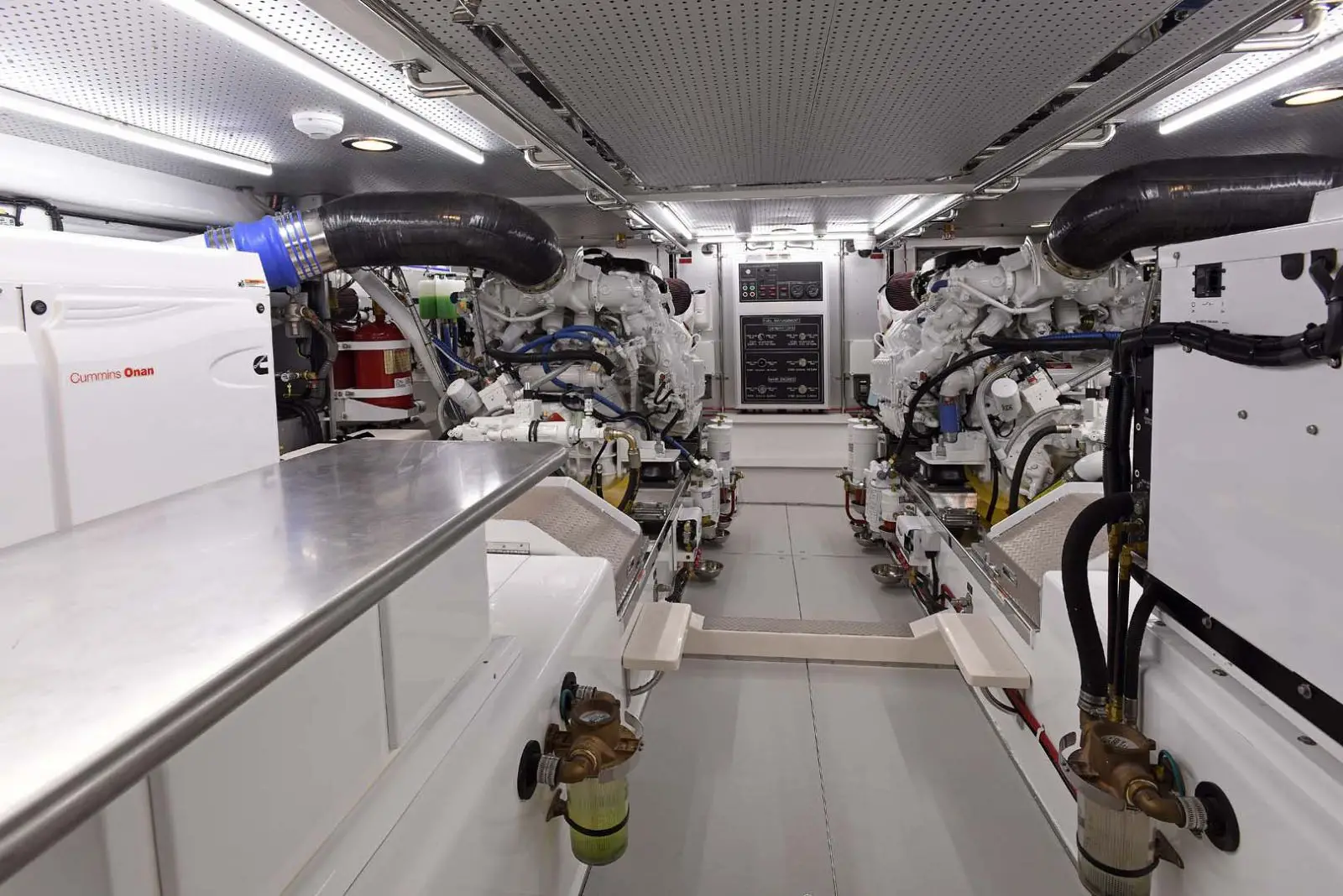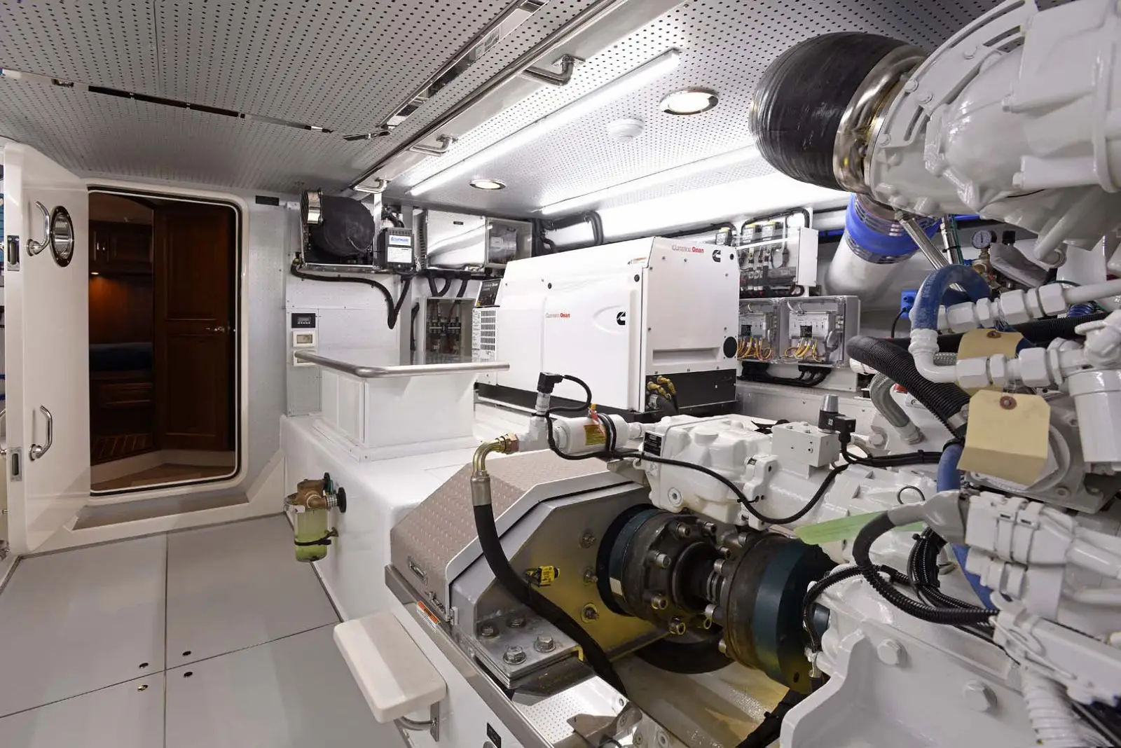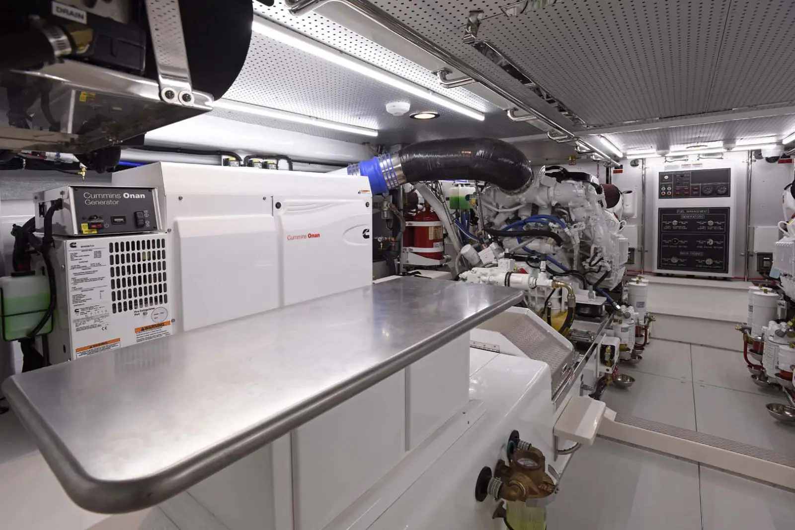 95 US gal (359 liter) oil tanks to port and stbd provide storage of clean and dirty lube oil. Tanks are connected to two oil change systems. A 16,000 BTU engine room air-conditioning system is standard equipment.