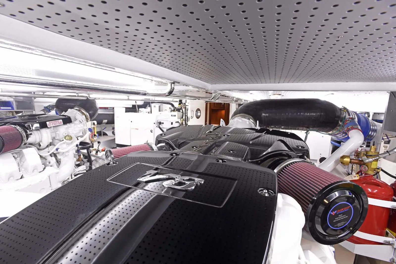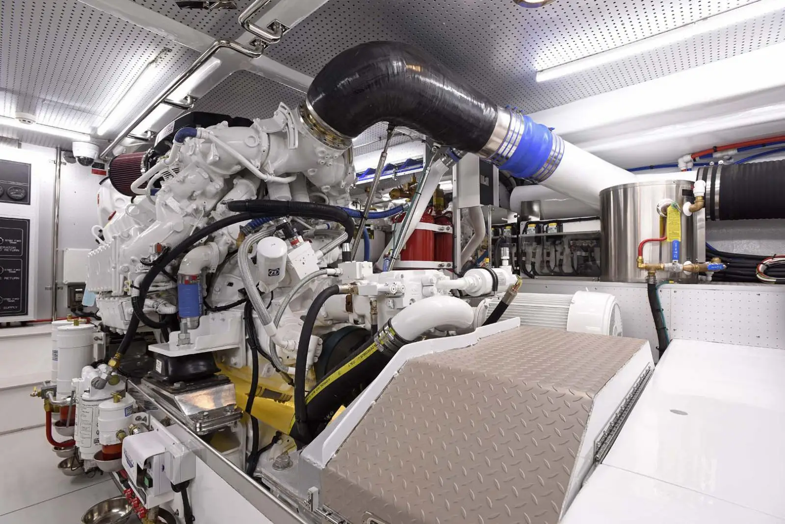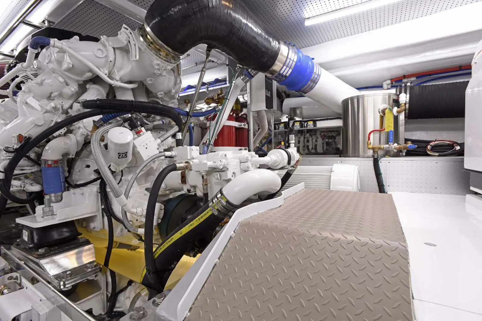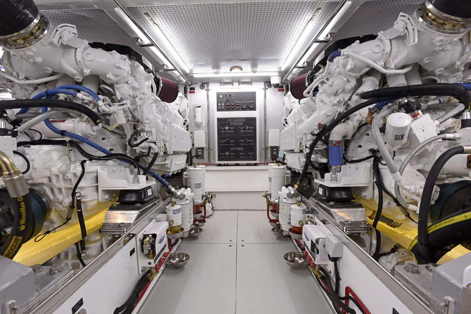 95 US gal (359 liter) oil tanks to port and stbd provide storage of clean and dirty lube oil. Tanks are connected to two oil change systems. A 16,000 BTU engine room air-conditioning system is standard equipment.